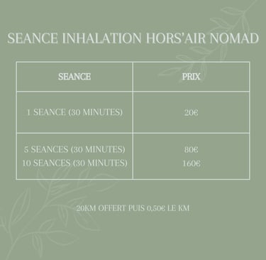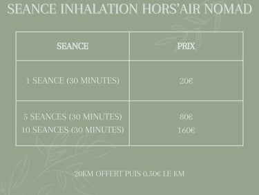 Séances à domicile de qualité, nous avons constatés une réel amélioration suite aux séances de nébulisation et une réelle décontraction suite aux séances des massage !