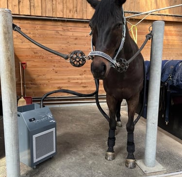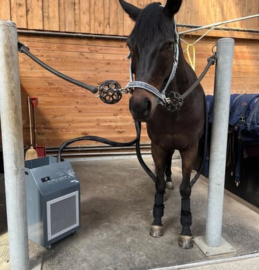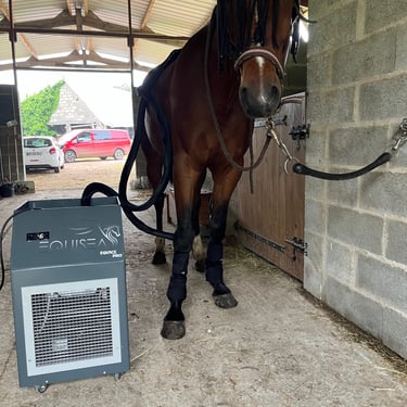 Traitement par le froid avec la machine de EQU'ICE PRO de chez EQUISEA, permet de soigner des tendinites, fourbures, etc en gagnant jusqu'à 60% du temps de guérison.